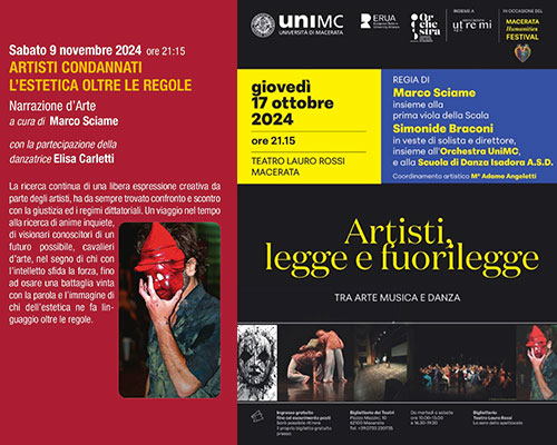 Lo spettacolo "Artisti, legge e fuorilegge" è stato messo in scena al teatro di Macerata Lauro Rossi e "Artisti condannati" al teatro di Treia (MC).